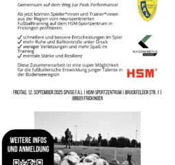 Am 12. September startet im HSM-Sportzentrum Frickingen die neue Zusammenarbeit mit Soccerkinetics Bodensee. Spieler und Trainer profitieren von neurozentriertem Training für bessere Entscheidungen, mehr Ballkontrolle, weniger Verletzungen und stärkere mentale…